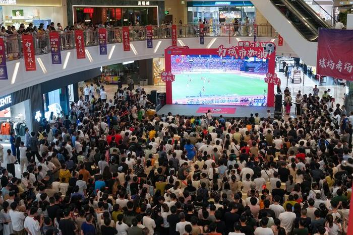 6月29日,市民、球迷在南通市内一处商场观看比赛直播。 新华社记者 李博 摄即使不是“全国顶流”赛事,凭借“多点开花”也能实现消费跃升。上半年,河北举办各类体育赛事5552场,既有ILCA亚洲(公开)帆船锦标赛等高级别赛事,又有路跑、山地、骑行、冰雪、水上等户外运动赛事,以及攀岩、激光跑、街舞、轮滑、匹克球、小轮车等新兴时尚赛事,累计吸引参赛人员和观众1343.62万人,直接带动消费超269亿元。